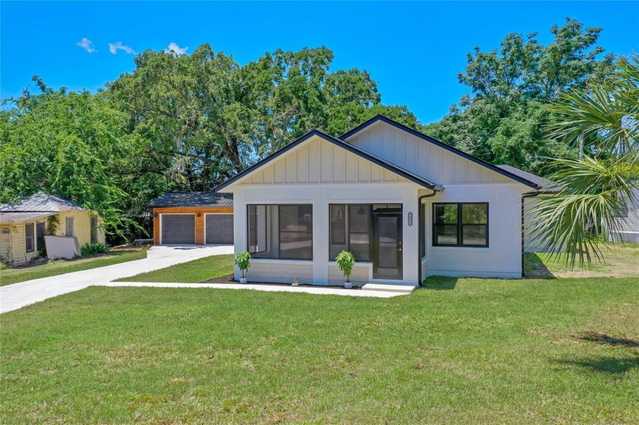Welcome home to 16623 Oklahoma Street in Clermont, your Brand New Custom Built Home, listed below appraised value. This one of a kind home has all the finishes you would expect to find in a custom built home and so much more. Situated on a quiet side street this home offers 3 Bedrooms, 2 Bathrooms, State of the art kitchen, Dining and huge living space with vaulted ceilings and beams. A gorgeous fireplace that is set back with a wood surround to incase that flat screen tv. Off the living room is the front door leading to the screened in porch an ideal spot for a drink after a day's work. The dream kitchen offers lots of cabinet space, granite counter tops, farm yard style sink, stainless appliances and a unique center Island with a custom made natural wood counter top with a resin finish, this will be the focal point of any family gathering. Off the kitchen we have the laundry room with AC handler and hot water heater and from there onto the primary suite, with high ceilings, large walk in closet and a stunning bathroom, with dual vanities, granite counter tops, beautiful mirrors and accent lighting and a large shower. We have 2 additional bedrooms both of a good size and offering, large closets with high end sliding doors, all bedrooms have ceiling fans. The secondary bathroom again offers granite counter tops and a full size tub and shower. Other features to notice throughout the home is the shear sophistication of the tall flat baseboards, with matching door trim, dark accent lighting to compliment the stunning windows, exterior doors and hardware throughout. This home truly is a Master Peace and needs to be seen in person to appreciate the grandeur it offers. The long sweeping driveway leads you to the second Masterpiece that this property offers and that is a huge garage, offering space for at least 3-4 cars and a added workshop area that could easily be converted into a home office. This space is a car/boating/motor cross/sport/hobby fanatics dream !!! What a space to house all those toys and space enough to work. The building is absolutely stunning with a metal roof and wood surround that mimics the fireplace surround in the living room. So much thought and shear passion has been put into this home and it shows throughout. A newly laid lawn with irrigation, spacious front lawn and plenty of space on the back for all your outdoor activities. This home is situated just a few minutes walk to Lake Minneola, close to the Boat Ramp, Tiki Bar and so much more. Just a few minutes to shopping, Restaurants and all that the Rolling Hills of Clermont has to offer. Your own private sanctuary, yet so close to everything and No HOA !!!! Call today for your own private tour of this custom built home.