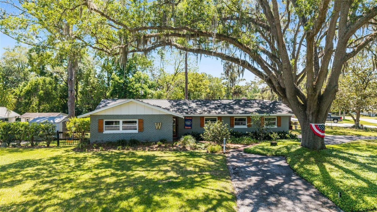 Welcome to Woodfields-one of Southeast Ocala's most charming and sought-after neighborhoods, where tree-lined streets and golf cart-friendly living make it easy to enjoy a quick ride to Downtown Ocala for dining, shopping, and entertainment. This 4-bedroom, 2-bath home sits proudly on a corner lot surrounded by mature landscaping and shaded beneath a stunning canopy of oak trees, offering timeless curb appeal and a welcoming first impression. A charming koi pond at the front entry creates a peaceful, inviting setting as you arrive. Inside, you'll appreciate the character and durability of terrazzo flooring throughout most of the home, paired with eye-catching broken mosaic tile in the spacious family room and at the front entry-adding a unique, artistic touch you don't often find. The layout offers comfortable living with generously sized bedrooms, large closets, and an abundance of storage throughout. The updated bathrooms bring a modern feel while maintaining the home's original charm. A large storage room off the kitchen, along with additional storage near the fourth bedroom, provides flexibility for hobbies, organization, or even a small workshop space. The indoor utility/laundry room adds everyday convenience.The family room is filled with natural light from a wall of windows, creating a bright and inviting space that connects seamlessly to the backyard. Step outside to your fully fenced yard-perfect for pets, play, or entertaining. Enjoy gatherings on the patio with both open and covered areas, plus a versatile lean-to ideal for additional storage or a shaded outdoor retreat. Dual driveways for plenty of parking. With a newer roof (2022), updated vinyl windows, distinctive interior features, and an unbeatable location in the heart of Woodfields, this home offers a rare opportunity to own a piece of classic Ocala charm with modern updates and a lifestyle that's hard to match.