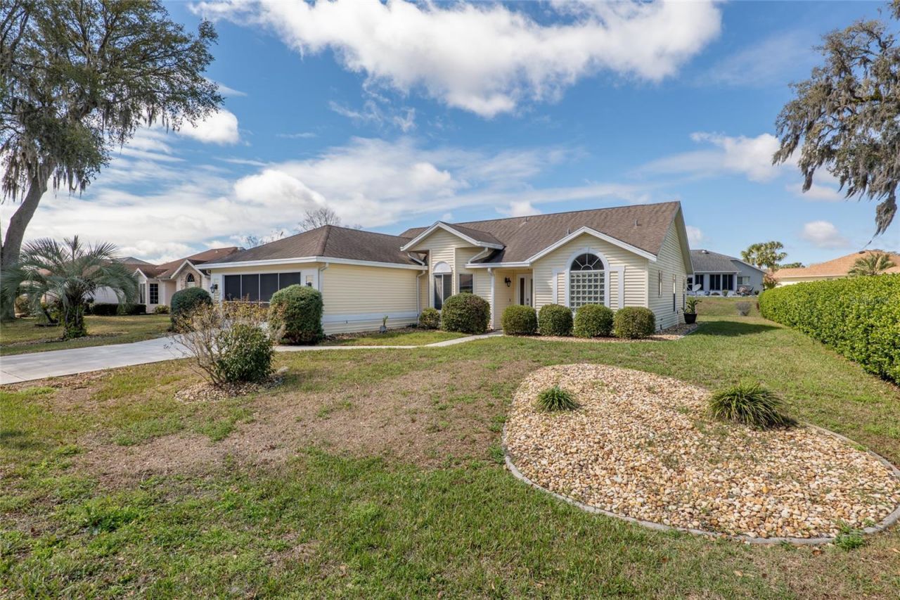 Discover your dream lifestyle in this meticulously updated Royal Model home, nestled within the prestigious gated community of Ocala Palms, just 2 miles from the World Equestrian Center! This stunning 2-bedroom, 2-bathroom residence boasts 1,534 sq ft of light-filled, open-concept living. Enjoy a prime location with easy access to the WEC, shopping, and dining. Recent upgrades include brand NEW wood flooring, NEW interior paint throughout the home, modern closet systems, an epoxy garage floor, new Low E glass windows in the breakfast nook, and new custom kitchen island molding. Cathedral ceilings and a spacious great room create an airy atmosphere, while the split bedroom layout provides privacy. The chef's kitchen features solid wood cabinets, granite countertops, stainless steel appliances, eating space and is open to the family room, perfect for entertaining! The breakfast nook has an adorable bay window with new Low E glass windows and views of the beautiful landscaped front yard. The spacious primary suite offers a walk-in closet and an ensuite bathroom with a garden tub, dual sinks, and a glass shower. Triple sliders lead out to the beautiful glass enclosed Florida Room under Heat & Air, which leads to a newer Birdcage Enclosure (2020) overlooking the gorgeous landscaped, tree shaded yard with gorgeous backyard views! Comfort and convenience are ensured with a 2016 Carrier AC with WiFi climate control and a 2011 architectural 30-year shingle roof. Indulge in the community's 18-hole golf course, 19,000 sq ft clubhouse, fitness center, Olympic-sized pool, hot tub, arts & crafts studio, pickleball, bocce ball, and a vibrant social scene. This meticulously maintained, move-in-ready home offers an exceptional opportunity to own a piece of paradise in the heart of Florida's horse country! Don't miss out!