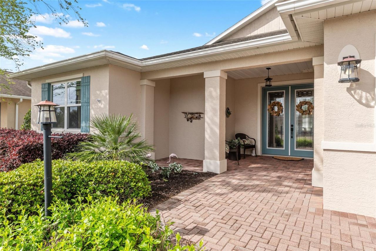 GOLF COURSE HOME on the sixth tee box of the Tortoise and the Hare golf course. This home is located in the much sought after Stonebridge, Candler Hills area of On Top of the World. The home features tons of upgrades, including a paver drive and walkway, easy to maintain luscious landscape; double door entry into your split, 3-bedroom, 3-bath, 3-car garage home, featuring a second en-suite ideal for your guest's comfort. The main living space includes tile, large Cambria quartz island and countertop with porcelain undermount sink, Harmony maple creme, mocha glazed staggered cabinets. Stainless steel appliances, gas cooktop, Emser Subway Vista backsplash. The large en-suite master bedroom overlooking the golf course, along with its walk-in closet wraps around to the laundry room, leads to the living area. The second en-suite bedroom with its own private bathroom, located across the main bedroom, is ideal for your guest. There is a 3rd bedroom with a walk-in closet and bathroom just outside of it with quartz counter and a tub/shower combo. The home also features a flex room that can be used as an office or hobby room and an additional room that offers extra living space. This exquisite home blends refined style with upgrades at every turn and features an unparalleled backyard view from its enclosed lanai that is ideal for entertaining, relaxing and to watch the breathtaking sunsets. Close to the amenities in OTOW via your golf cart: indoor/outdoor pools, 3 golf courses, 2 restaurants, multiple exercise facilities with plenty of top of the line equipment, water aerobics, yoga, exercise classes, steam and sauna, Pickleball courts, RC plane airport, RC car track, min golf, wood working, 100's of clubs and continuing education, bocce, horseshoes, shuffleboard, billiards, game room. Social activities galore with great residents. The amenities are too much to list. On Top of the World is Ocala's premier, gated, active 55+ community, loaded with amenities and includes golf cart access to three shopping centers.